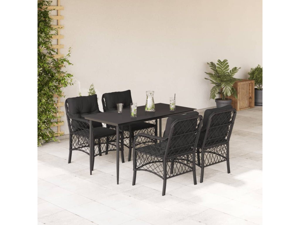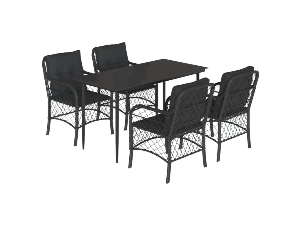 vidaXL 5-dielna záhradná jedálenská súprava a vankúše čierna polyratan