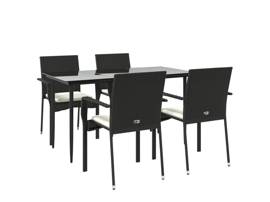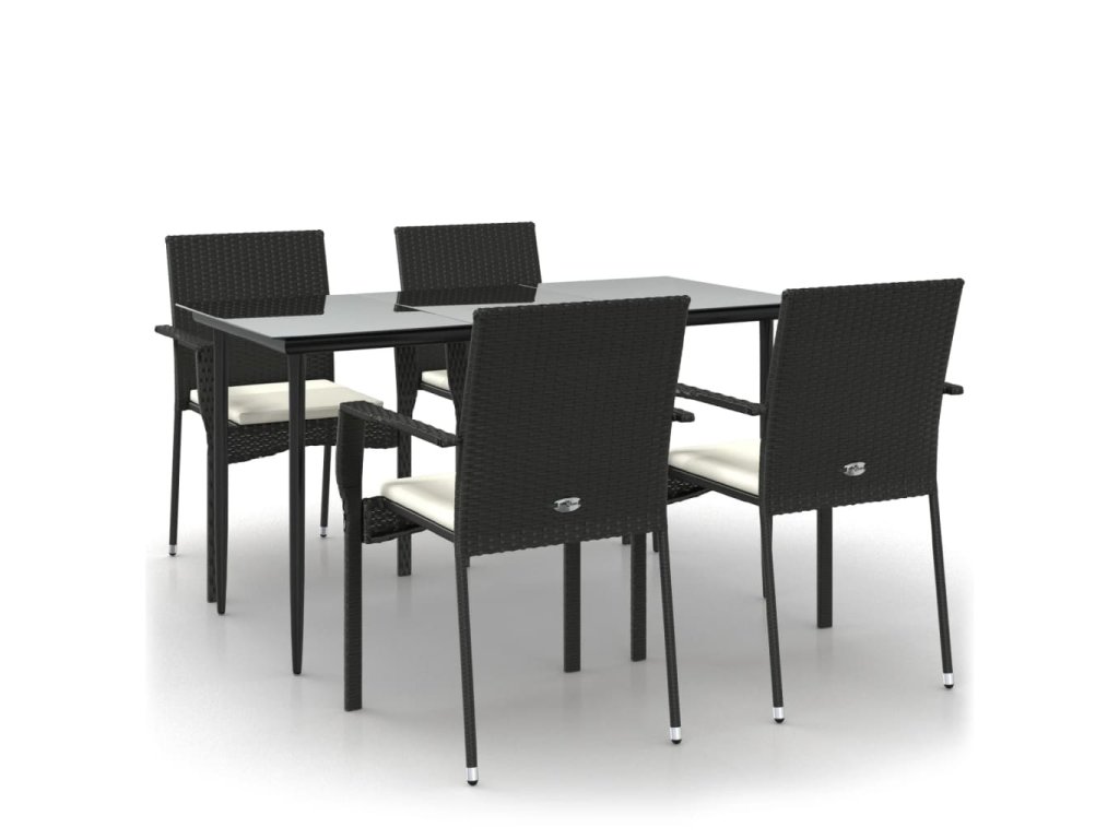 vidaXL 5-dielna záhradná jedálenská súprava a vankúše čierna polyratan