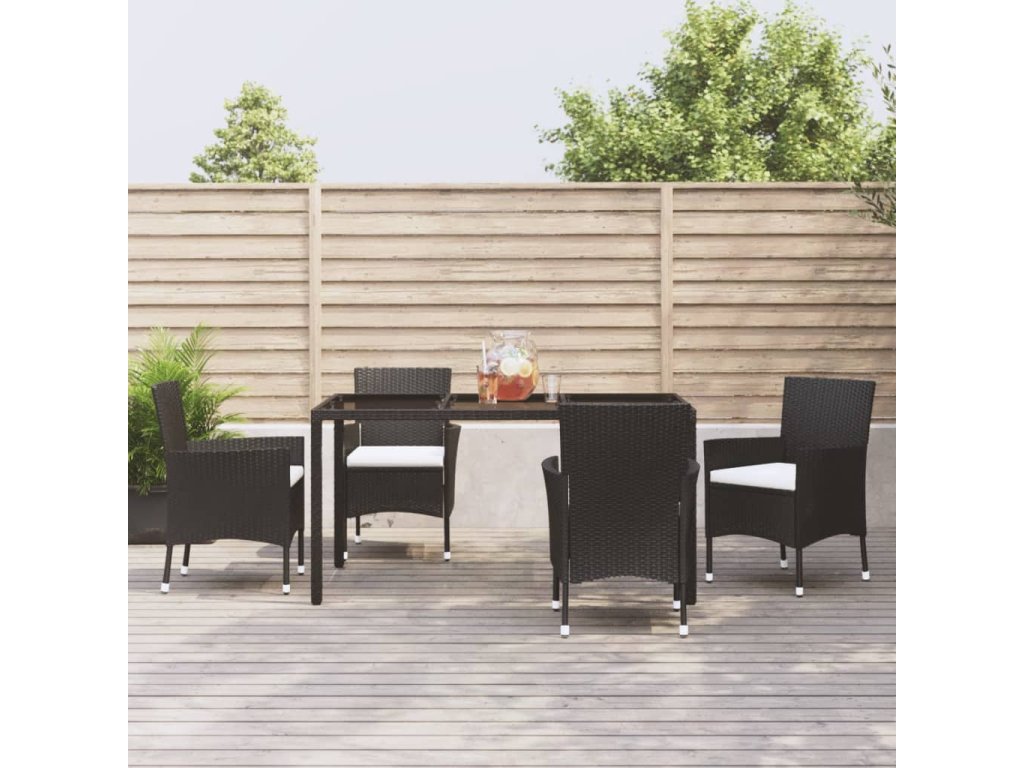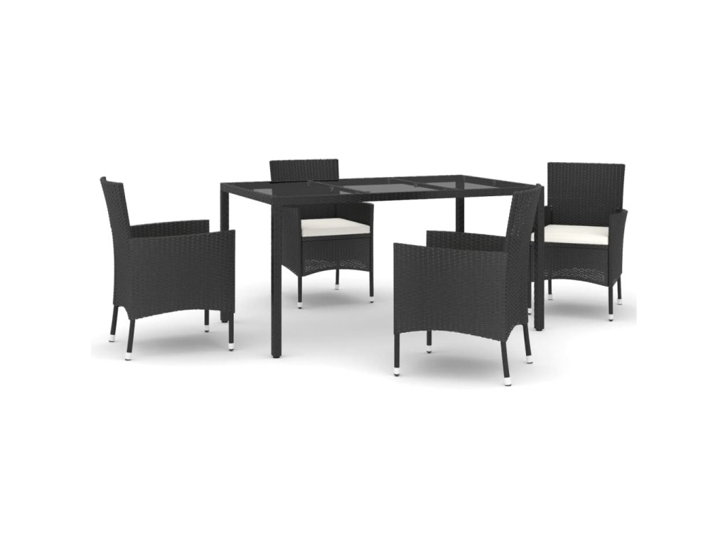 vidaXL 5-dielna záhradná jedálenská súprava a vankúše čierna polyratan