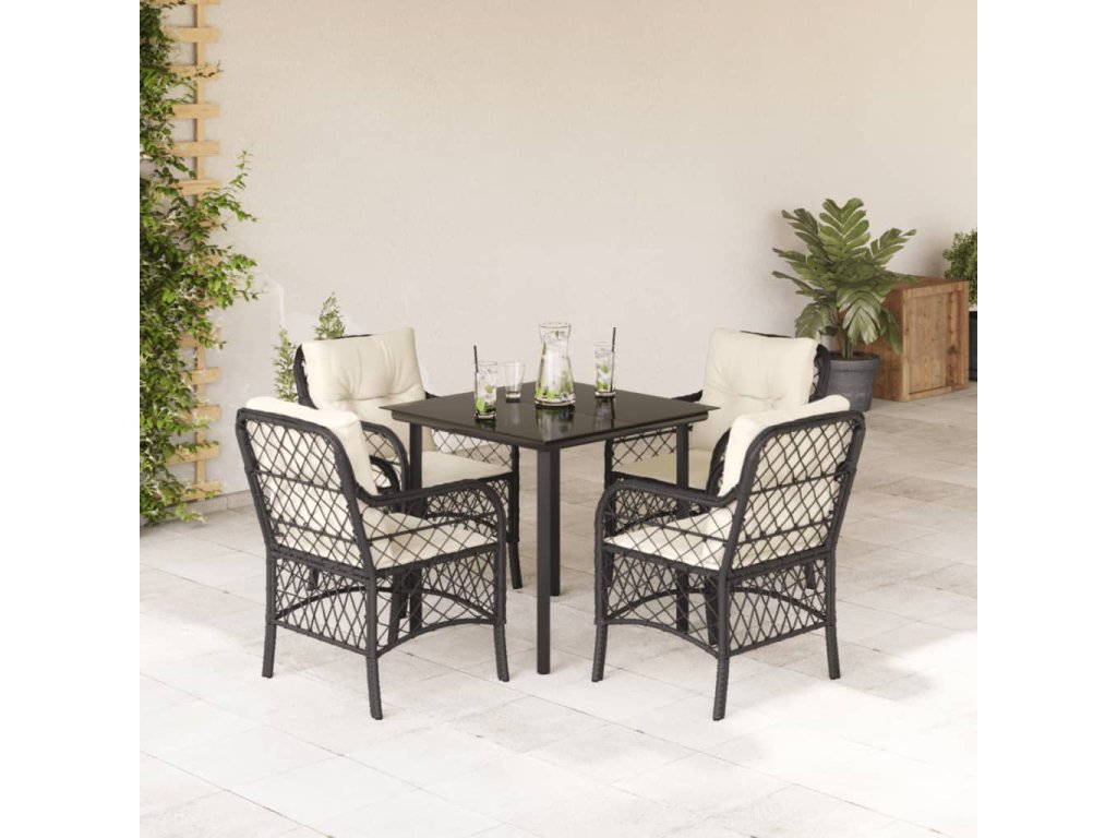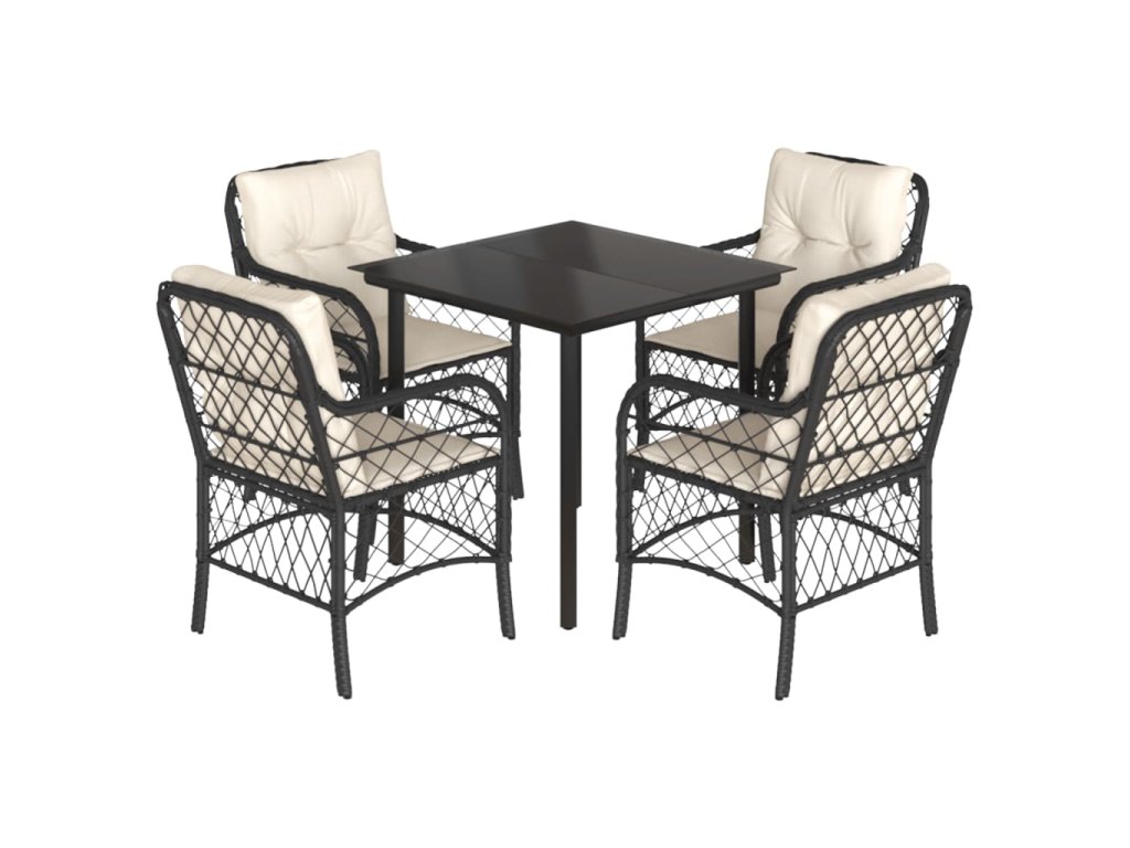 vidaXL 5-dielna záhradná jedálenská súprava a vankúše čierna polyratan