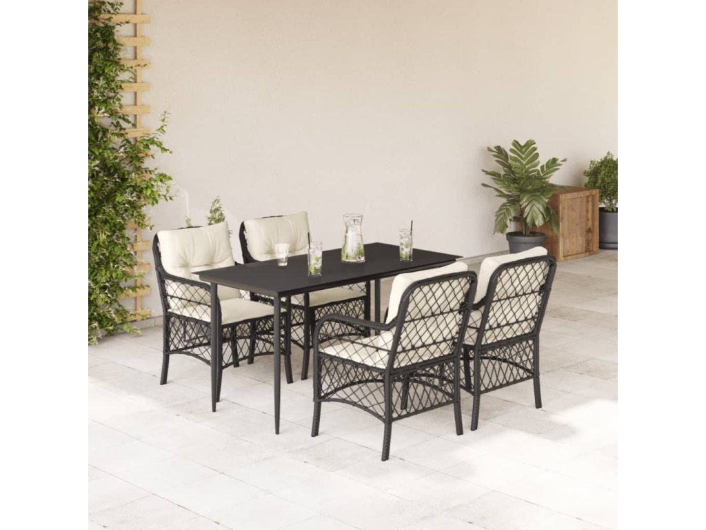 vidaXL 5-dielna záhradná jedálenská súprava a vankúše čierna polyratan