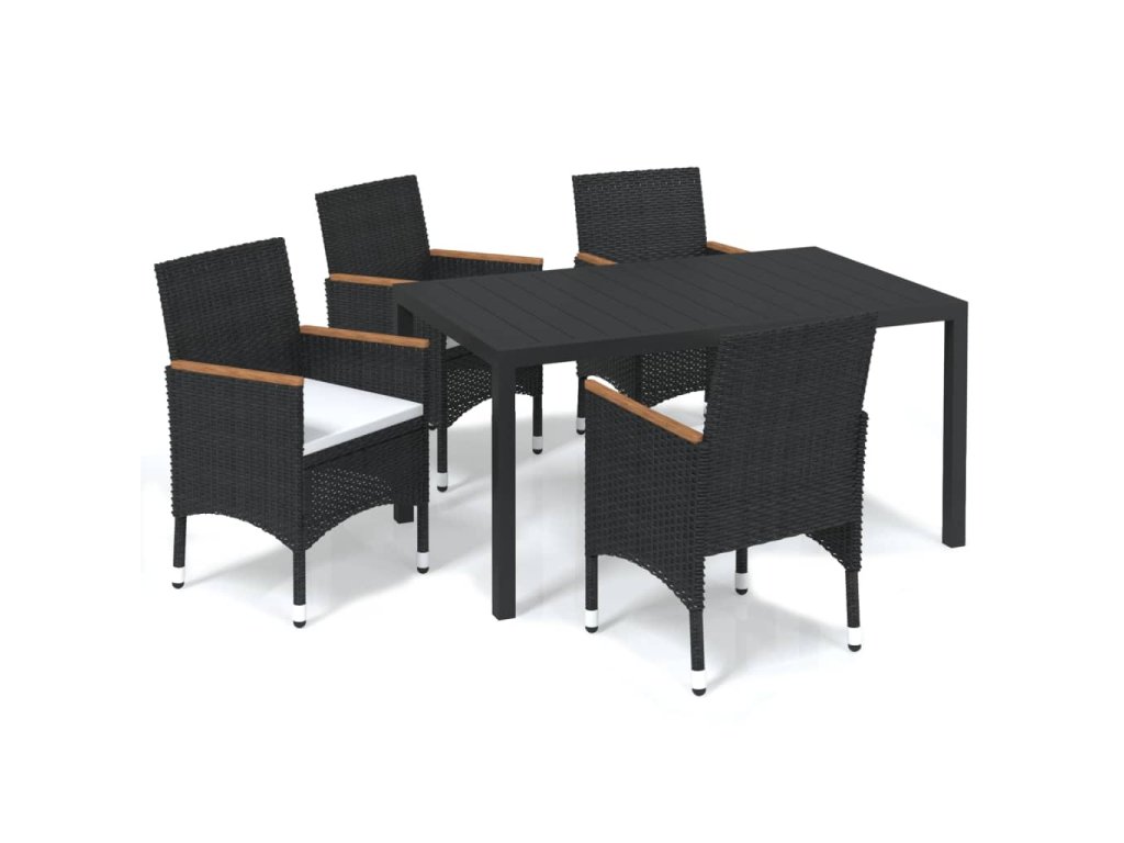 vidaXL 5-dielna záhradná jedálenská súprava a vankúše čierna polyratan