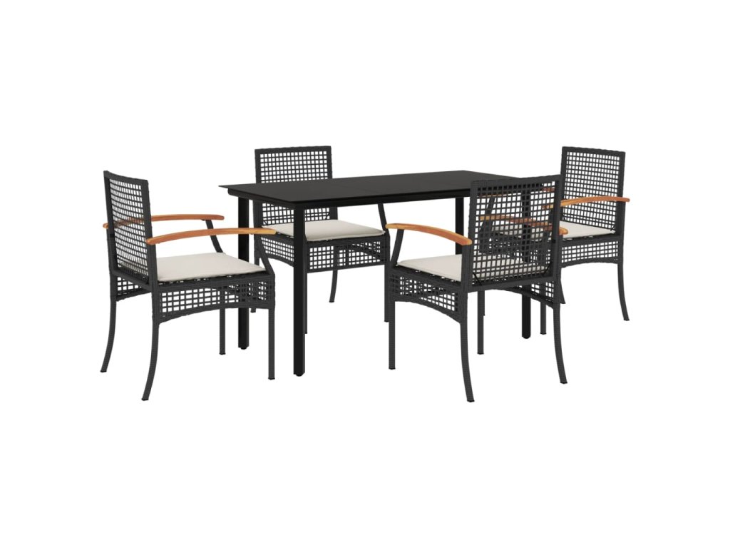 vidaXL 5-dielna záhradná jedálenská súprava a vankúše čierna polyratan