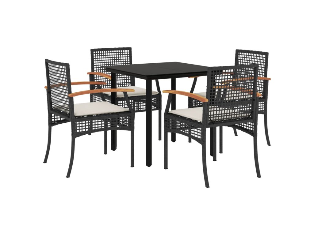 vidaXL 5-dielna záhradná jedálenská súprava a vankúše čierna polyratan