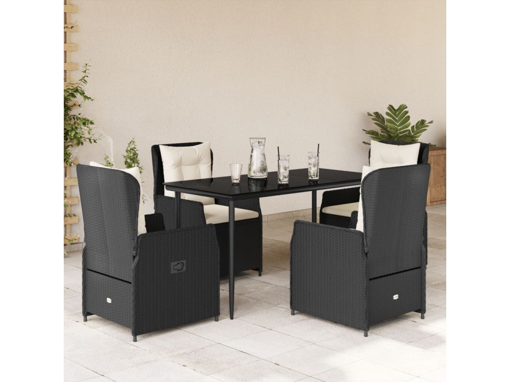 vidaXL 5-dielna záhradná jedálenská súprava a vankúše čierna polyratan