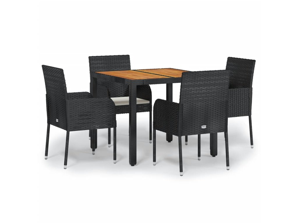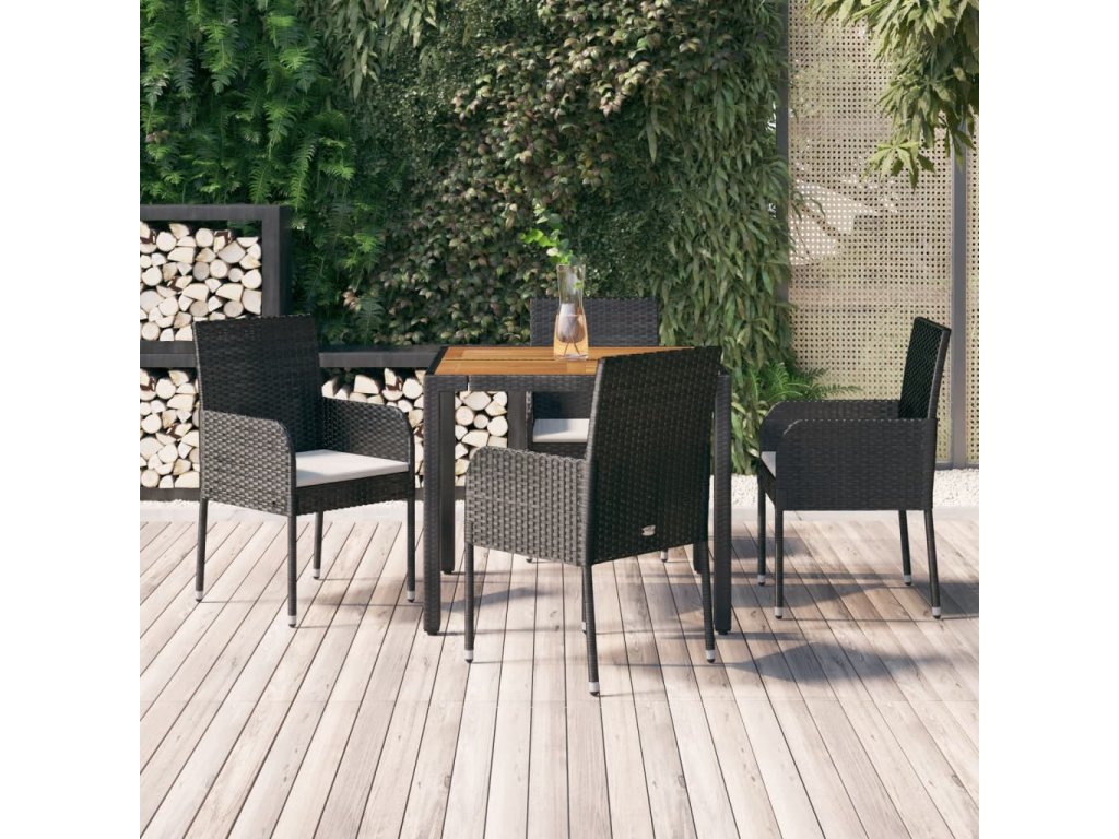 vidaXL 5-dielna záhradná jedálenská súprava a vankúše čierna polyratan
