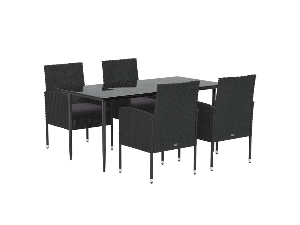 vidaXL 5-dielna záhradná jedálenská súprava a vankúše čierna polyratan