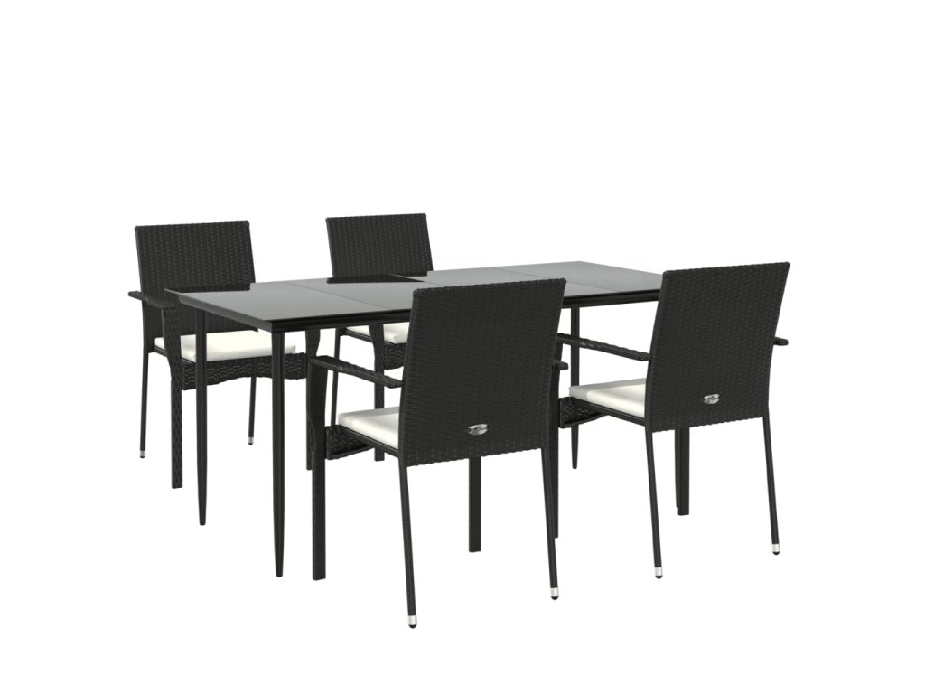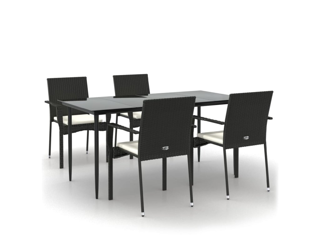 vidaXL 5-dielna záhradná jedálenská súprava a vankúše čierna polyratan