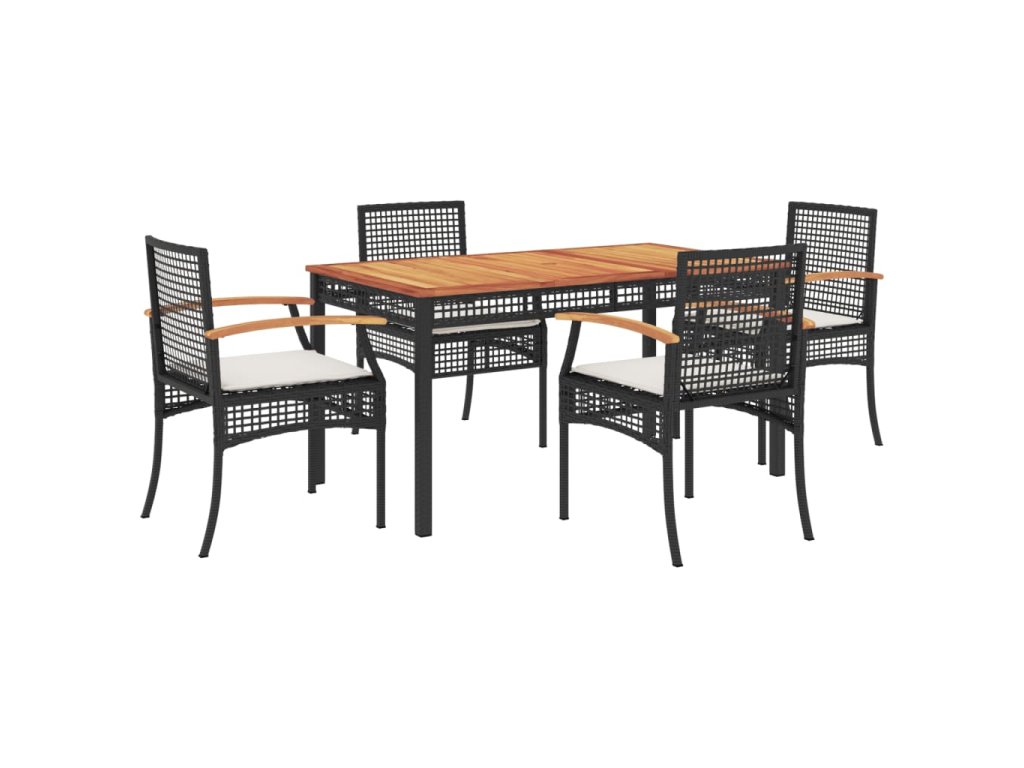 vidaXL 5-dielna záhradná jedálenská súprava a vankúše čierna polyratan