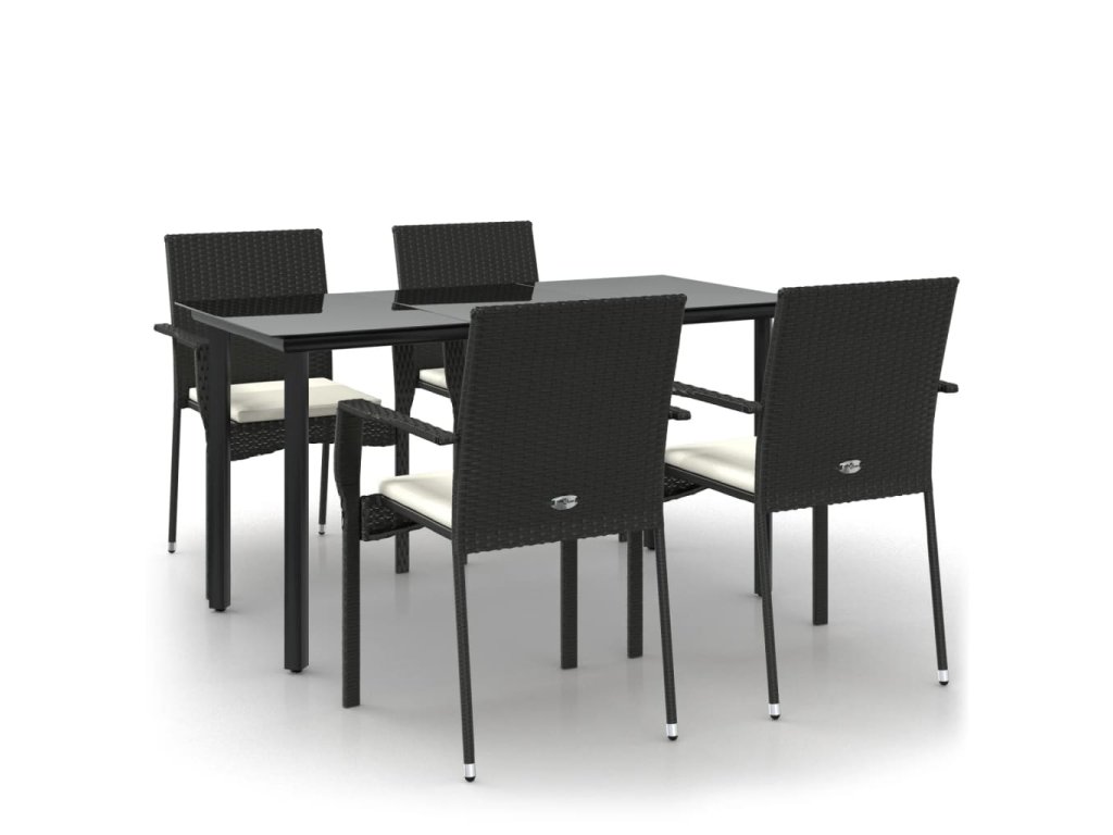 vidaXL 5-dielna záhradná jedálenská súprava a vankúše čierna polyratan