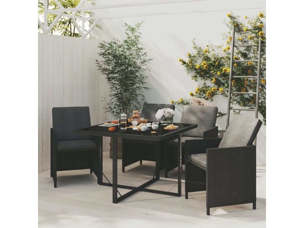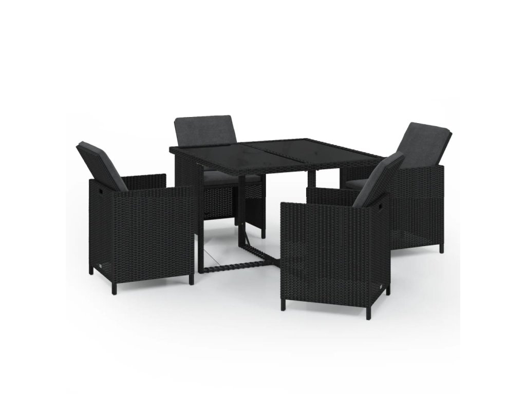 vidaXL 5-dielna záhradná jedálenská súprava a vankúše čierna polyratan