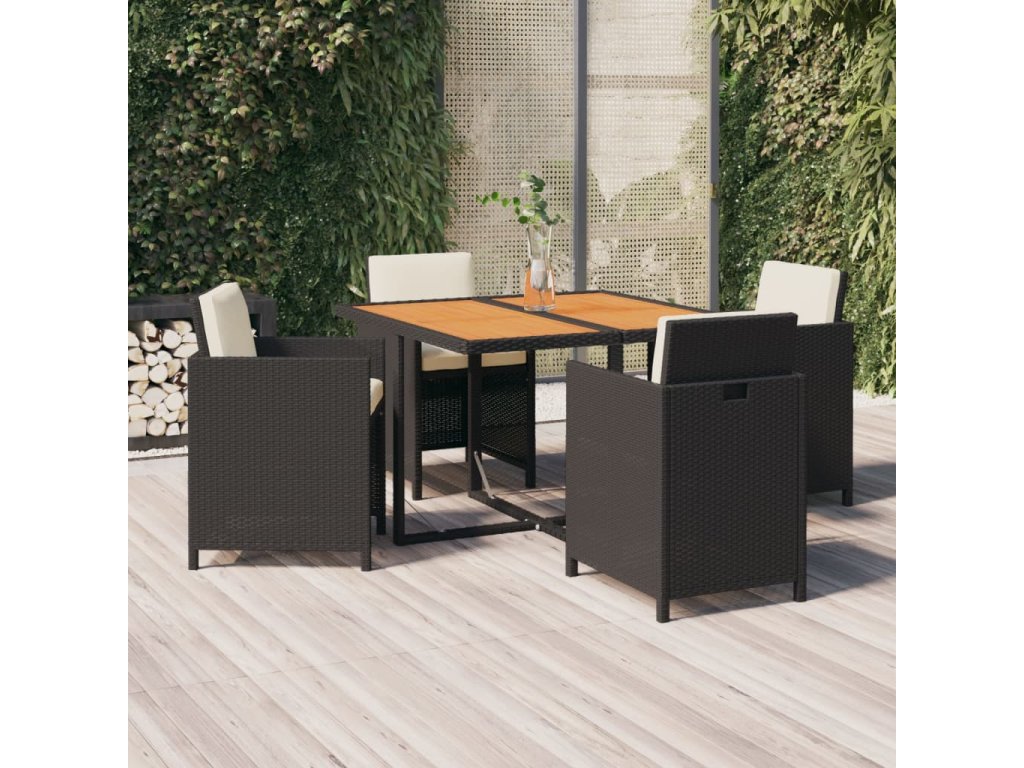 vidaXL 5-dielna záhradná jedálenská súprava a vankúše čierna polyratan