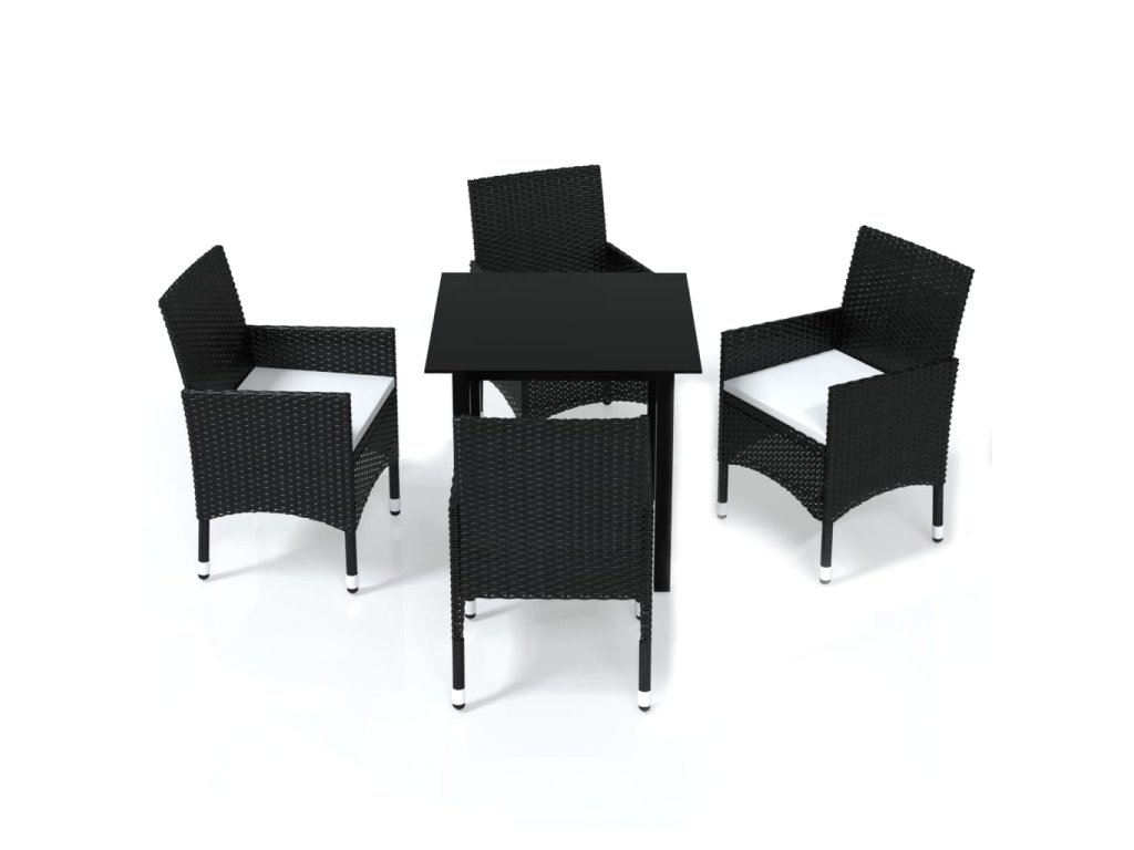 vidaXL 5-dielna záhradná jedálenská súprava a vankúše čierna polyratan