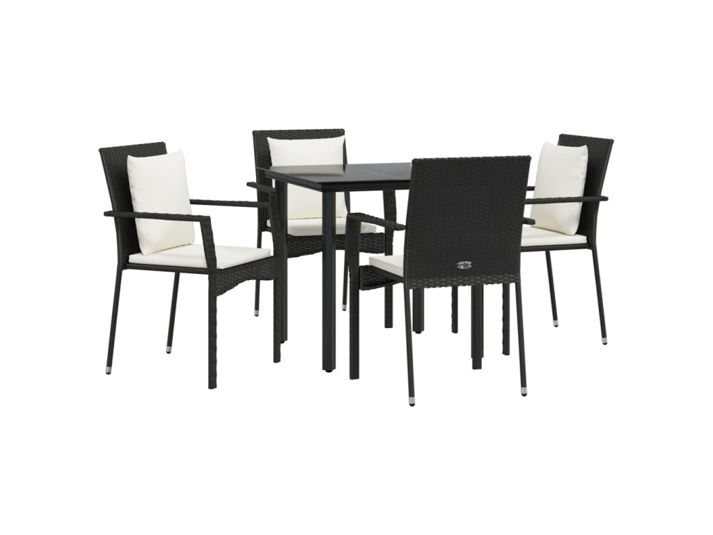 vidaXL 5-dielna záhradná jedálenská súprava a vankúše čierna polyratan