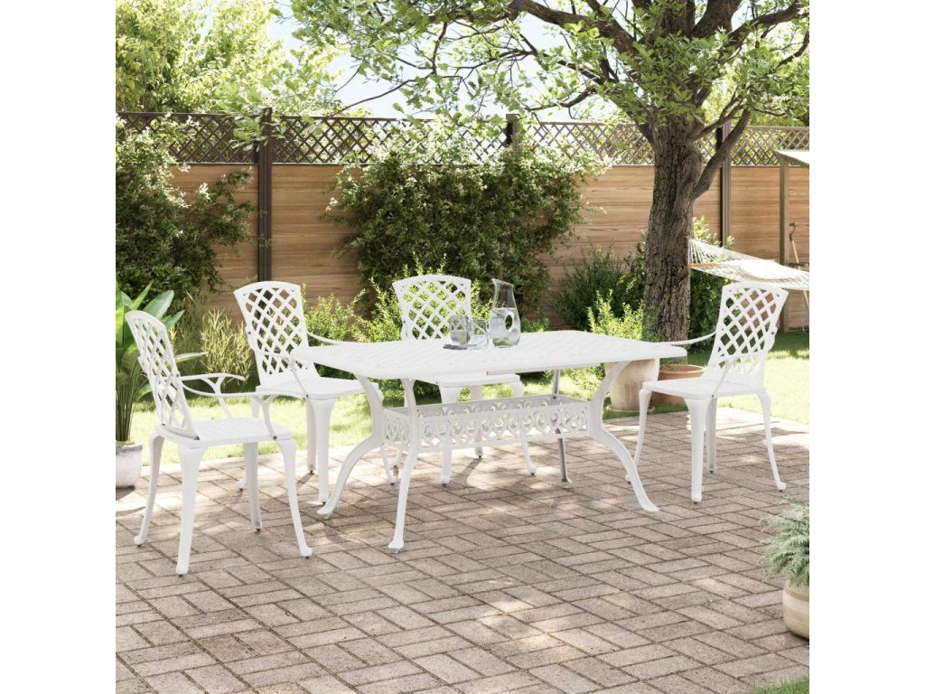 vidaXL 5-dielna záhradná jedálenská súprava biela liaty hliník