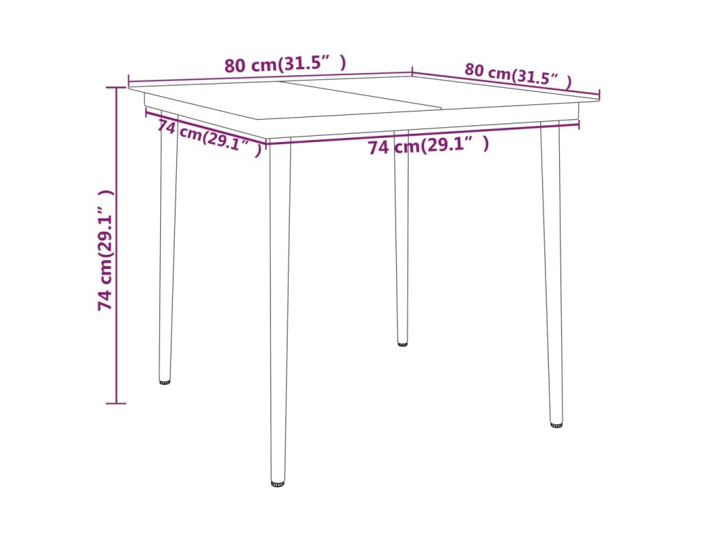 - Rozmery stola: 80 x 80 x 74 cm (D x Š x V)