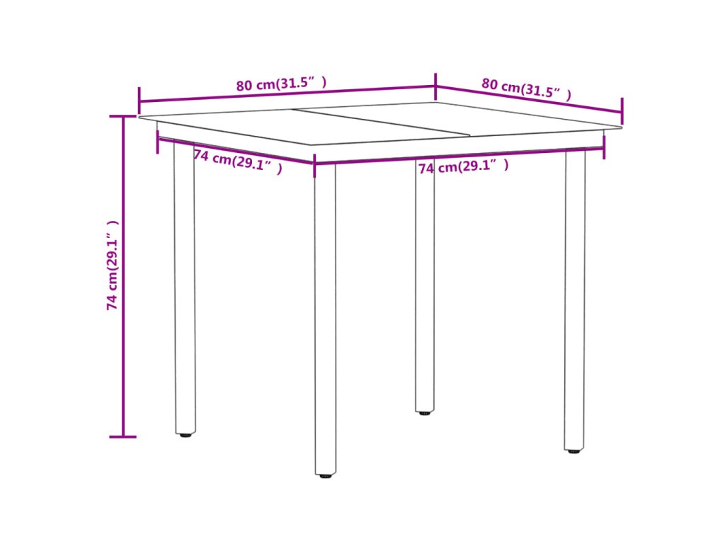 - Rozmery stola: 80 x 80 x 74 cm (D x Š x V)