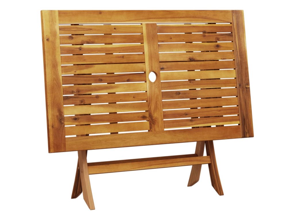 - Skladacia konštrukcia: Vonkajší jedálenský stôl a stoličky sa dajú ľahko zložiť, keď sa nepoužívajú, aby sa dali ľahko skladovať a prepravovať.