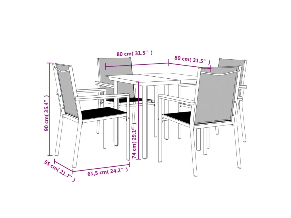 vidaXL 5-dielna záhradná jedálenská súprava čierna textilén a oceľ