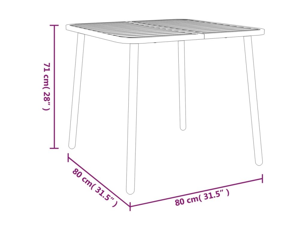 - Stabilný rám: Elektroforetické lakovanie a práškovaná povrchová úprava na oceli zaisťuje odolnosť a stabilitu tohto vonkajšieho stola.