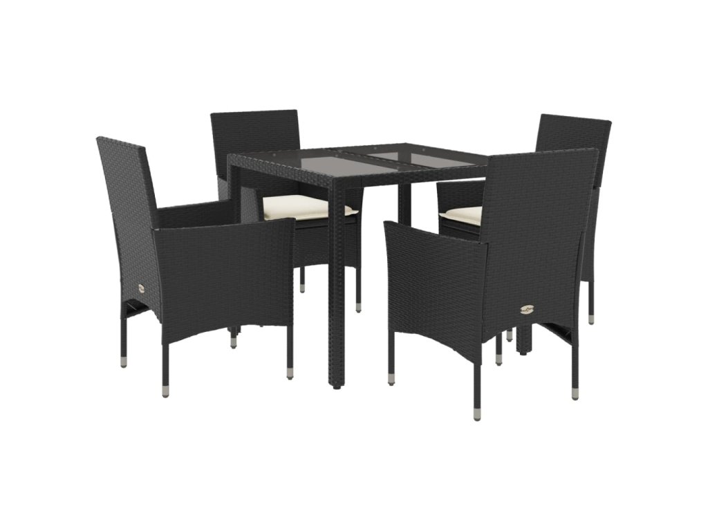 vidaXL 5-dielna záhradná jedálenská súprava+podložky, čierna polyratan