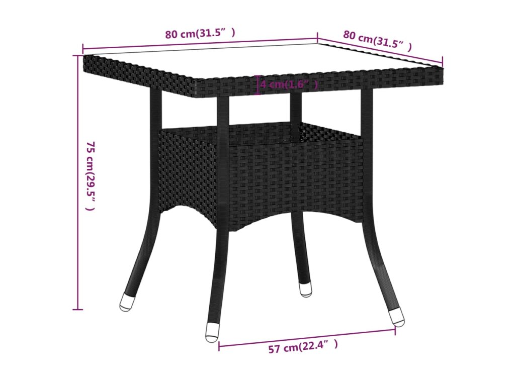 - Rozmery stolíka: 80 x 80 x 75 cm (Š x H x V)
