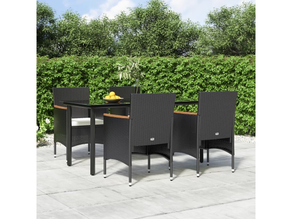 vidaXL 5-dielna záhradná jedálenská súprava s poduškami čierna