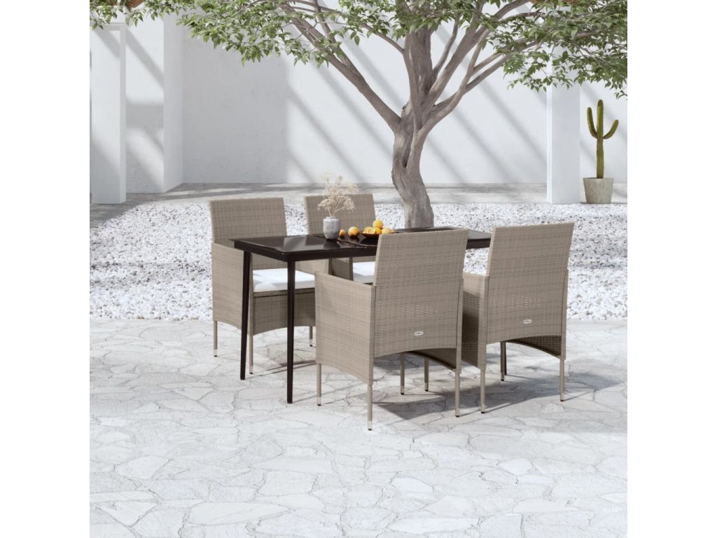 vidaXL 5-dielna záhradná jedálenská súprava s vankúšmi béžová a čierna