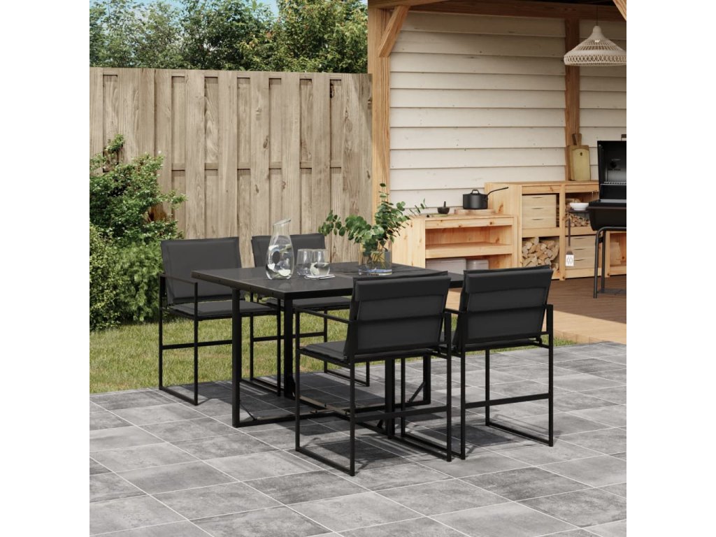 vidaXL 5-dielna záhradná jedálenská súprava s vankúšmi čierna textilén