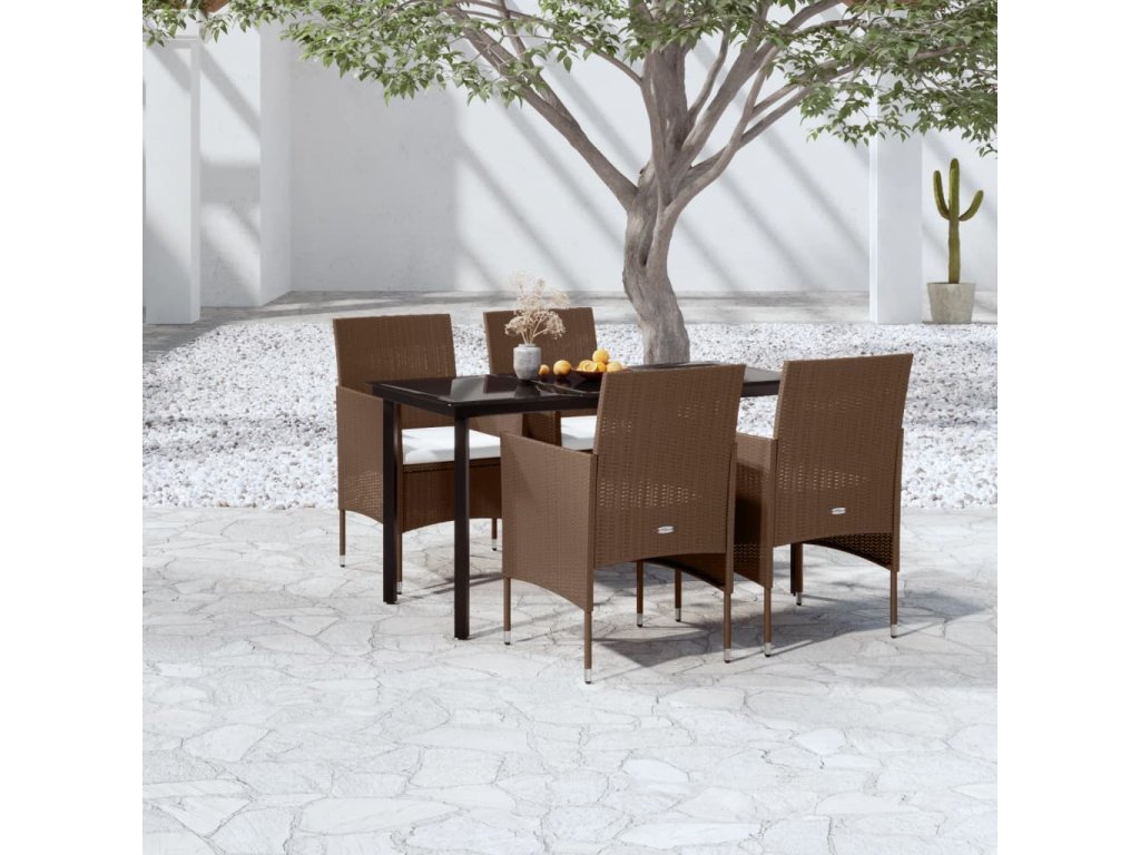 vidaXL 5-dielna záhradná jedálenská súprava s vankúšmi hnedá a čierna