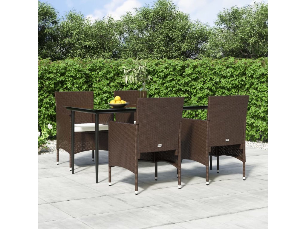 vidaXL 5-dielna záhradná jedálenská súprava s vankúšmi hnedá a čierna