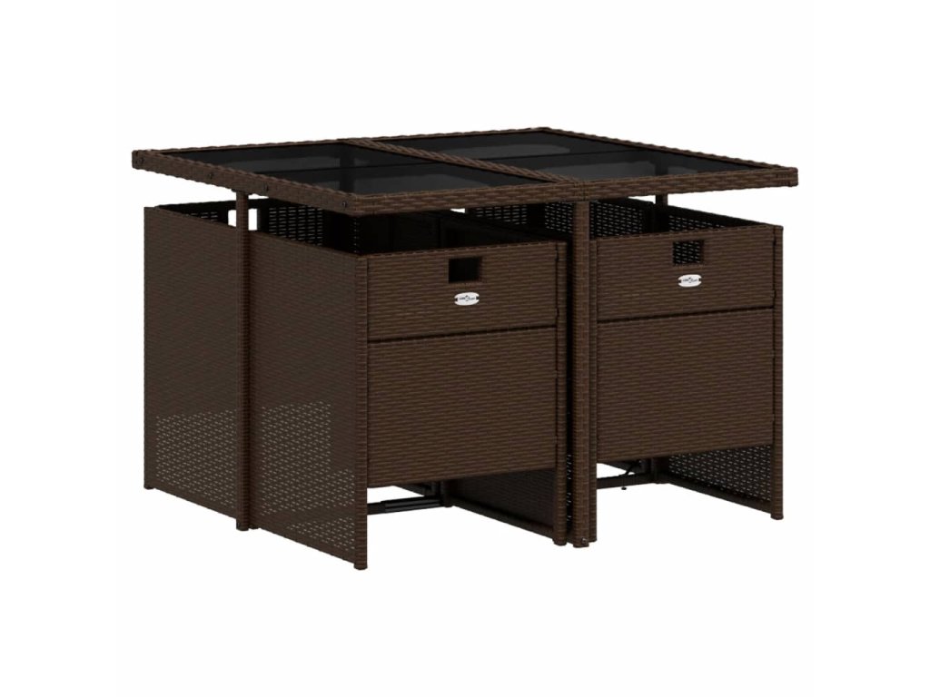 vidaXL 5-dielna záhradná jedálenská súprava s vankúšmi hnedá polyratan