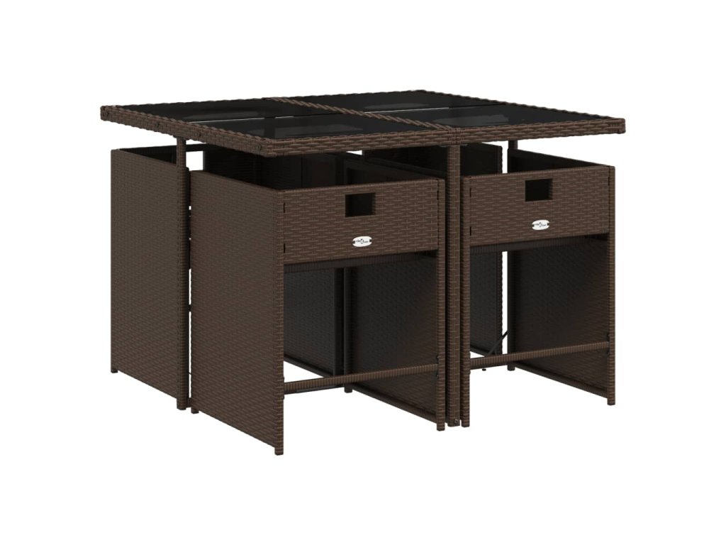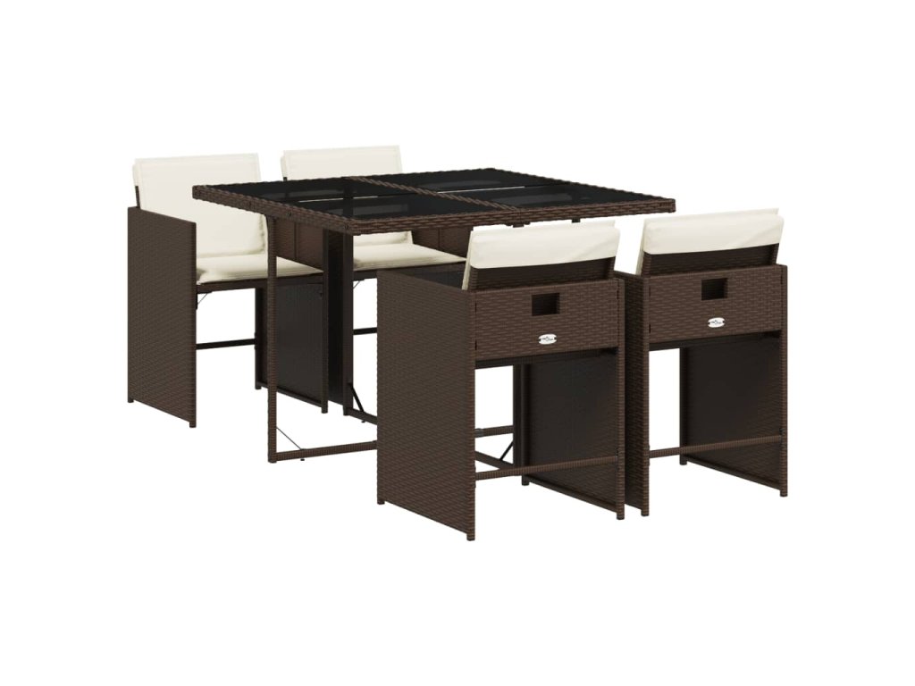 vidaXL 5-dielna záhradná jedálenská súprava s vankúšmi hnedá polyratan