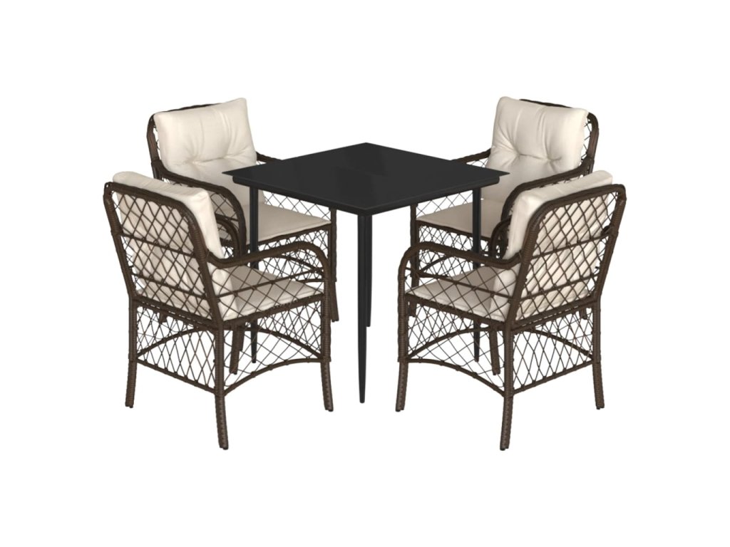 vidaXL 5-dielna záhradná jedálenská súprava s vankúšmi hnedá polyratan
