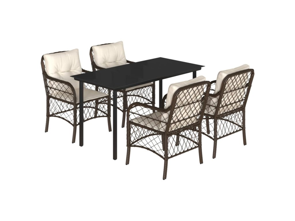 vidaXL 5-dielna záhradná jedálenská súprava s vankúšmi hnedá polyratan