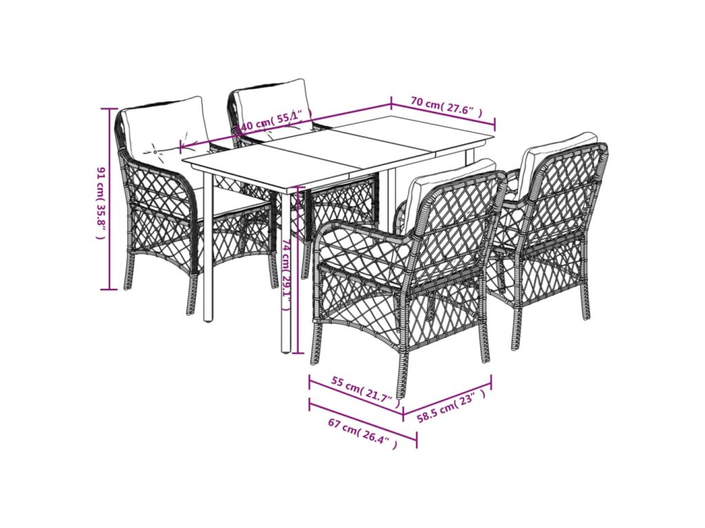 Táto záhradná jedálenská súprava je skvelou voľbou na stolovanie pod holým nebom alebo len tak na oddych v záhrade, na dvore alebo na terase.