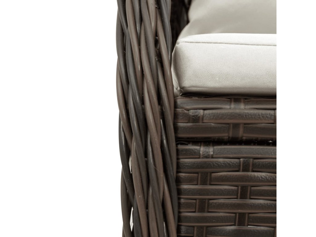 - Pohodlné sedadlo: Tento vonkajší nábytok, doplnený o hrubo čalúnené vankúše, ponúka pohodlné sedenie.