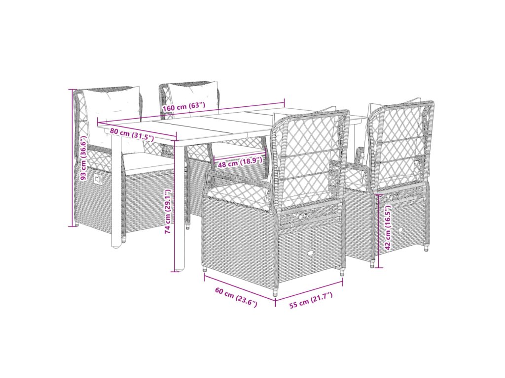 Táto záhradná jedálenská súprava je skvelou voľbou na stolovanie pod holým nebom alebo len tak na oddych v záhrade, na dvore alebo na terase.