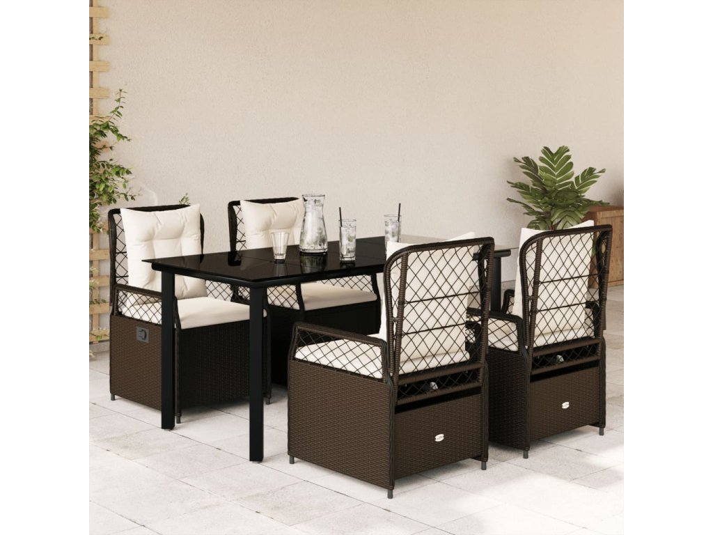 vidaXL 5-dielna záhradná jedálenská súprava s vankúšmi hnedá polyratan