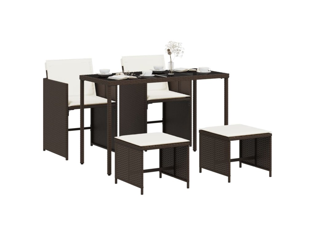 vidaXL 5-dielna záhradná jedálenská súprava s vankúšmi hnedá polyratan