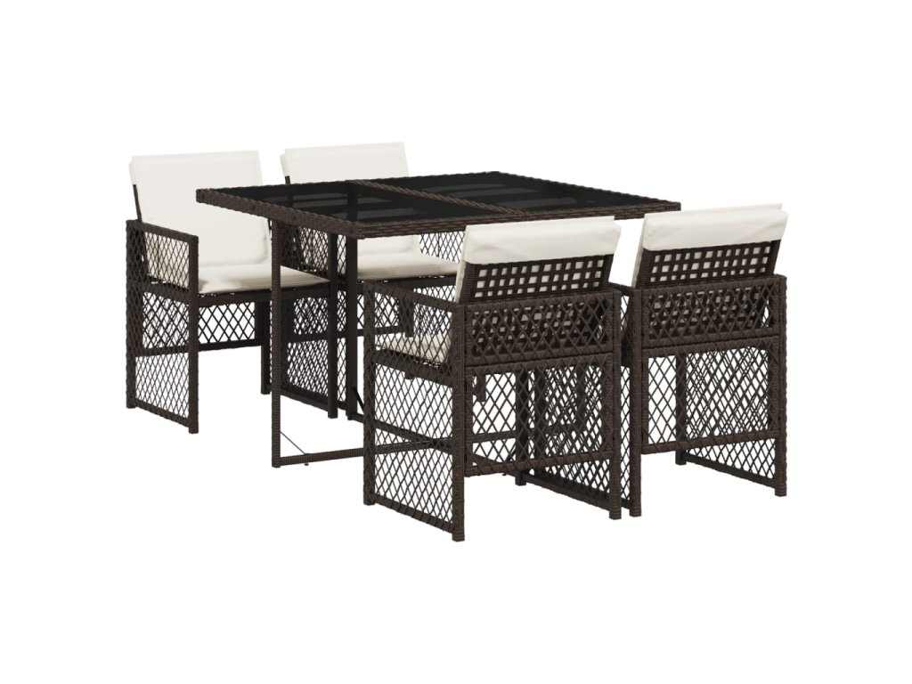 vidaXL 5-dielna záhradná jedálenská súprava s vankúšmi hnedá polyratan