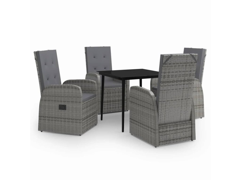 Stôl a stoličky sú pevné a stabilné vďaka oceľovým rámom s práškovým nástrekom, čím sú vhodné pre každodenné vonkajšie používanie. Vďaka vodeodolnému PE ratanu sa stoličky ľahko čistia a sú vhodné na každodenné používanie. Operadlo sa sklápa potiahnutím tlačidla na boku. Vďaka ľahkej konštrukcii sa stoličky ľahko premiestňujú. Hrubo čalúnené sedáky tiež zvyšujú pohodlie. Polyesterové poťahy nenáročné na údržbu je možné zvliecť a vyprať. Hladká sklenená doska stola sa jednoducho čistí vlhkou handričkou a je ideálna na umiestnenie jedál, nápojov a dekoratívnych predmetov.