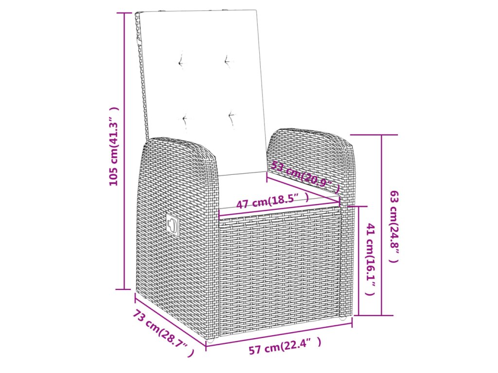 - Rozmery kresla (nesklopené): 57 x 73 x 105 cm (Š x H x V)