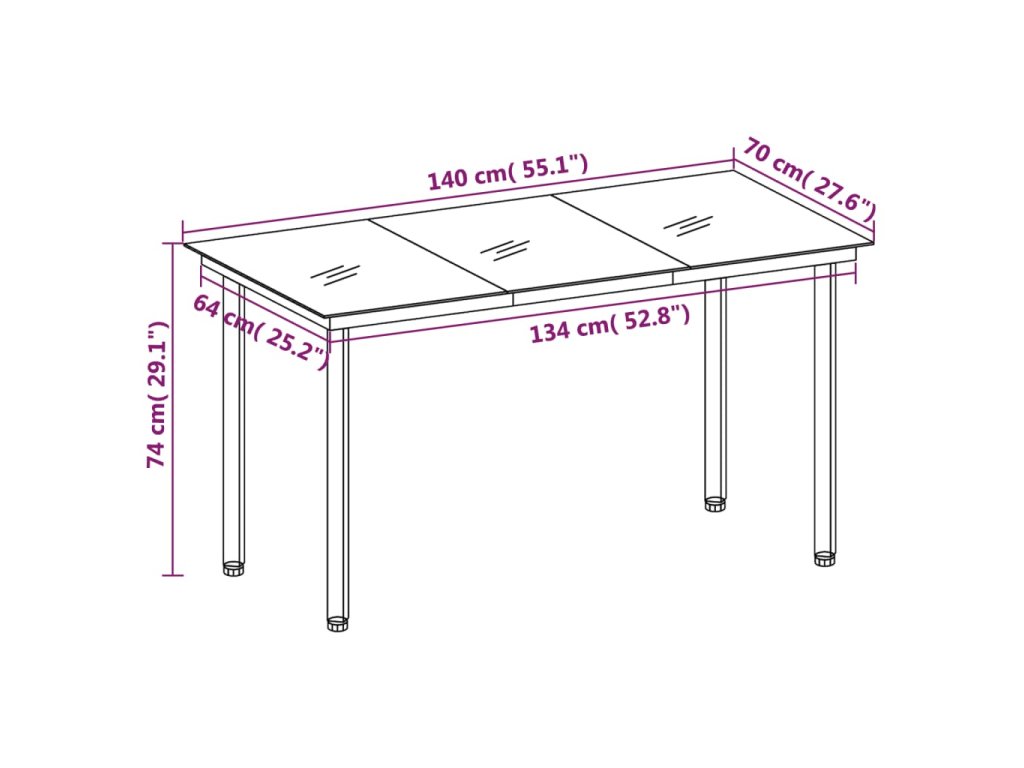 - Rozmery: 140 x 70 x 74 cm (D x Š x V)