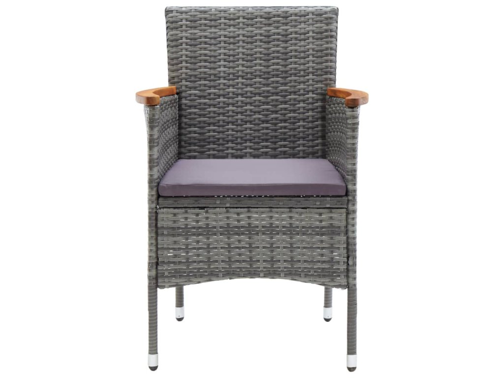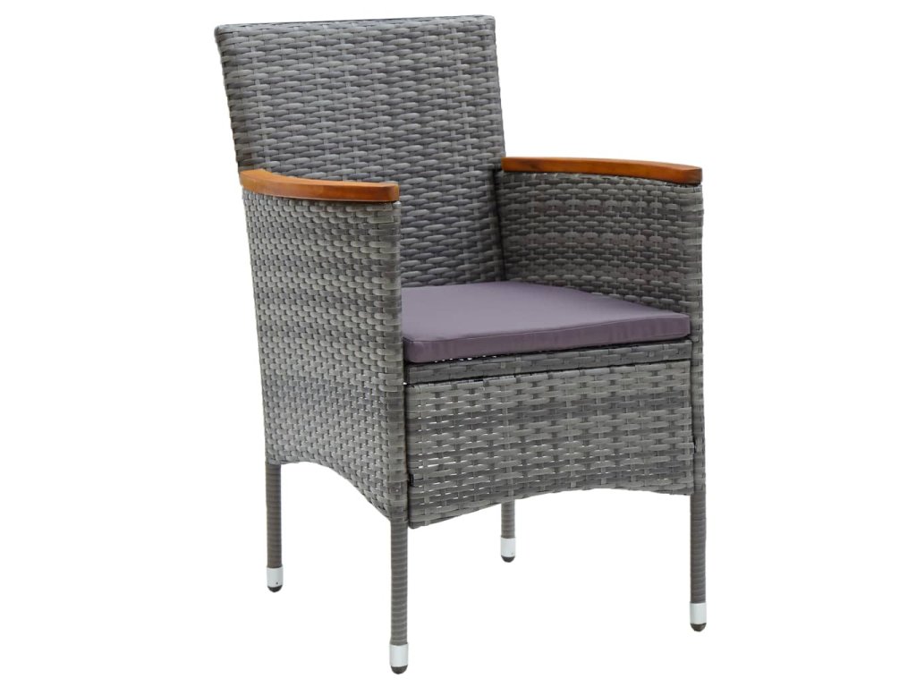 Jedálenský stôl je vyrobený z masívneho akáciového dreva s olejovou povrchovou úpravou, vďaka čomu je stabilný, odolný a ľahko sa udržiava. Vďaka práškovanému oceľovému rámu, ktorý je pokrytý vodeodolným PE ratanom sú tieto jedálenské stoličky pevné a ľahko sa čistia. Vonkajšia stolička navrhnutá so zakriveným operadlom a lakťovými opierkami má ergonomický tvar pre maximálne pohodlie. Podrúčky sú nádherne zdobené masívnym akáciovým drevom, ktoré im dodáva rustikálny šarm. Nahrubo polstrované vankúše navyše poskytujú maximálne pohodlie počas sedenia.