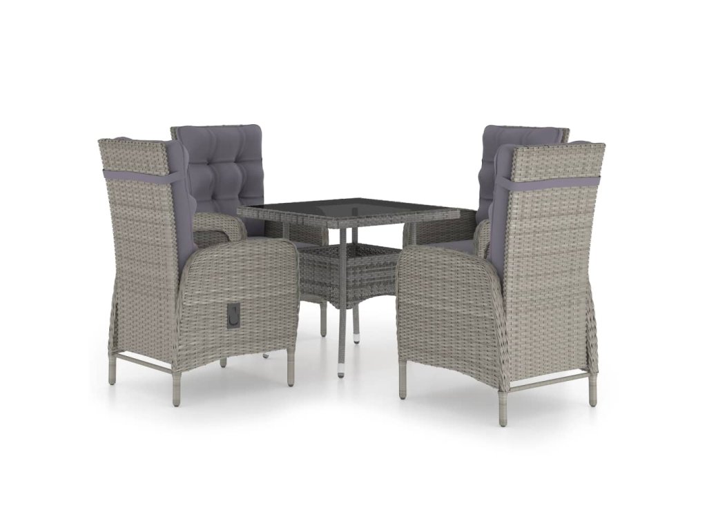 vidaXL 5-dielna záhradná jedálenská súprava sivá polyratan a sklo