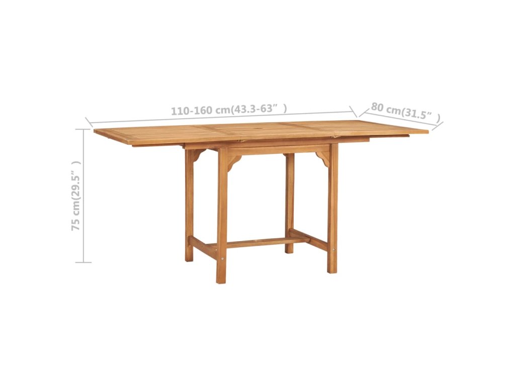 Súprava je okrem toho odolná aj voči vlhkosti a hmyzu. Krásna povrchová úprava drevu dodáva teplý farebný odtieň. Jedálenský stôl sa vďaka svojmu špeciálnemu dizajnu dá v prípade potreby roztiahnuť do dĺžky maximálne 160 cm. Stôl má otvor na slnečník, ktorý vás ochráni pred slnkom. Stoličky môžete navyše jednoducho poskladať, keď sa nepoužívajú. Súprava vám poskytne praktické a pohodlné miesto na posedenia s rodinou a priateľmi. A okrem toho sa dá ľahko očistiť navlhčenou handričkou.