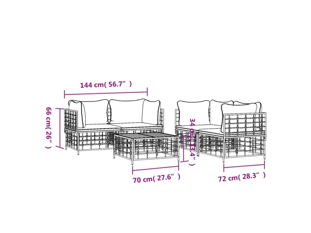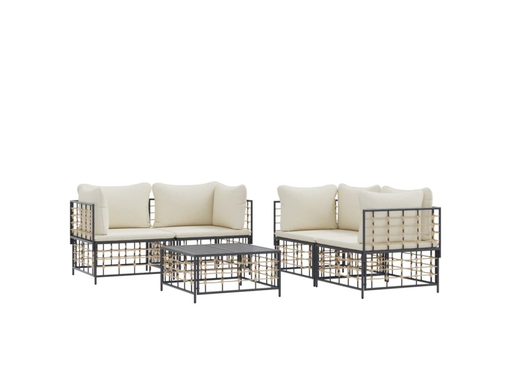 vidaXL 5-dielna záhradná sedacia sada s vankúšmi antracitová polyratan