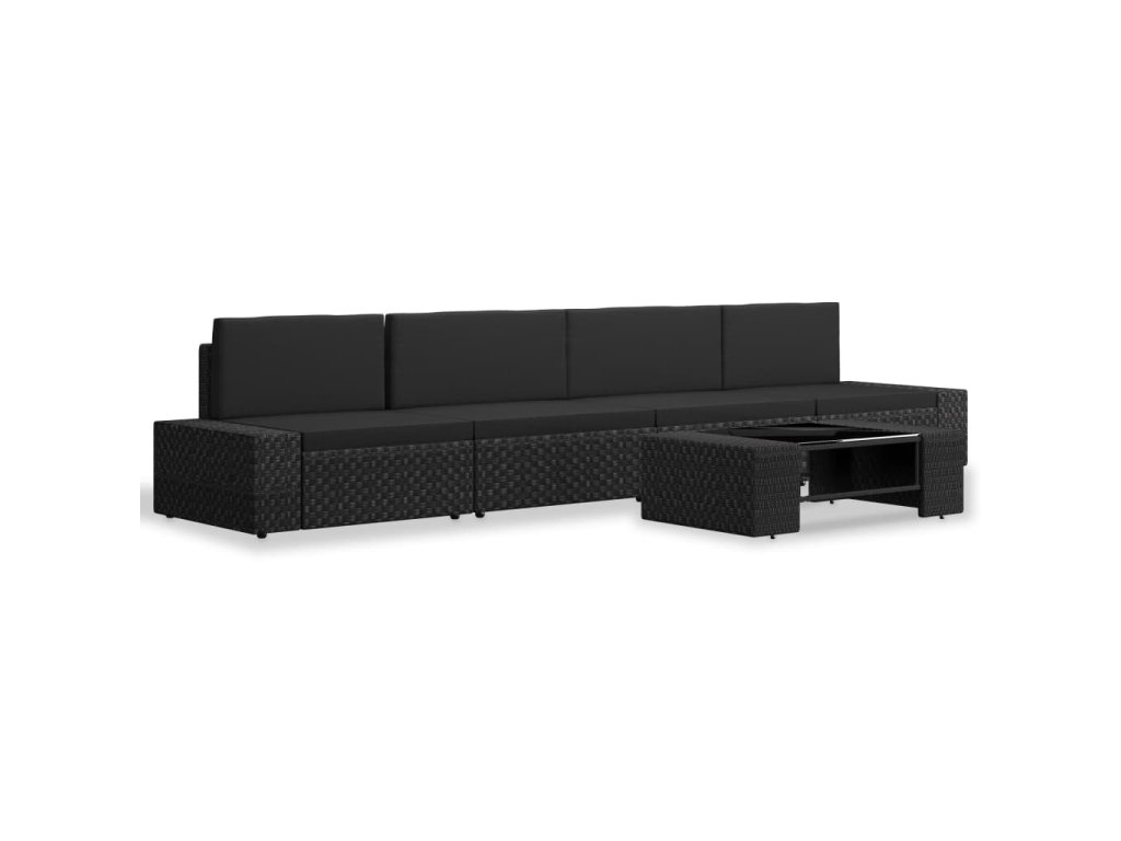 vidaXL 5-dielna záhradná sedacia súprava, polyratan, čierna