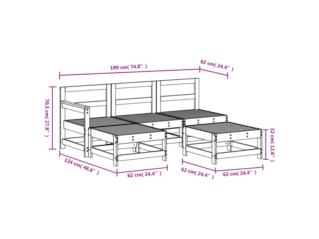 - Rozmery stredovej pohovky: 62 x 62 x 70,5 cm (D x Š x V)